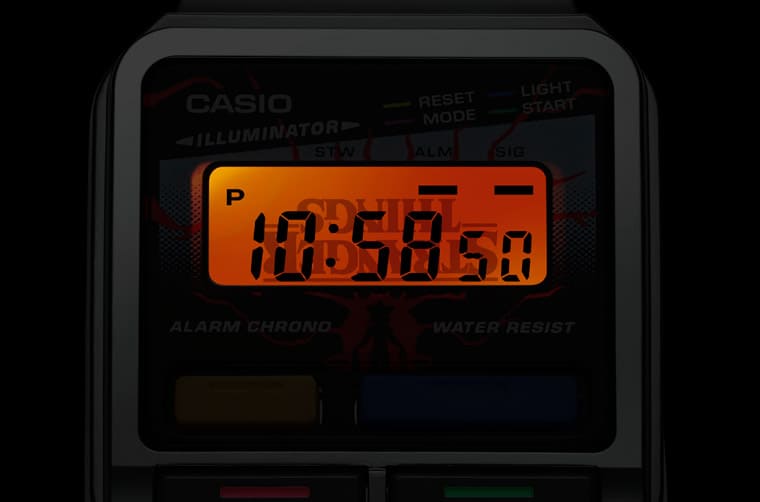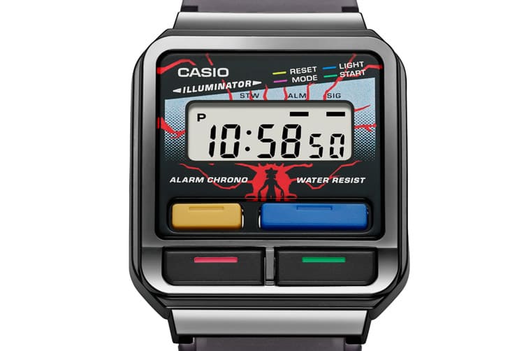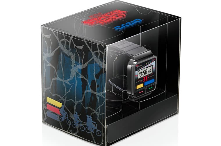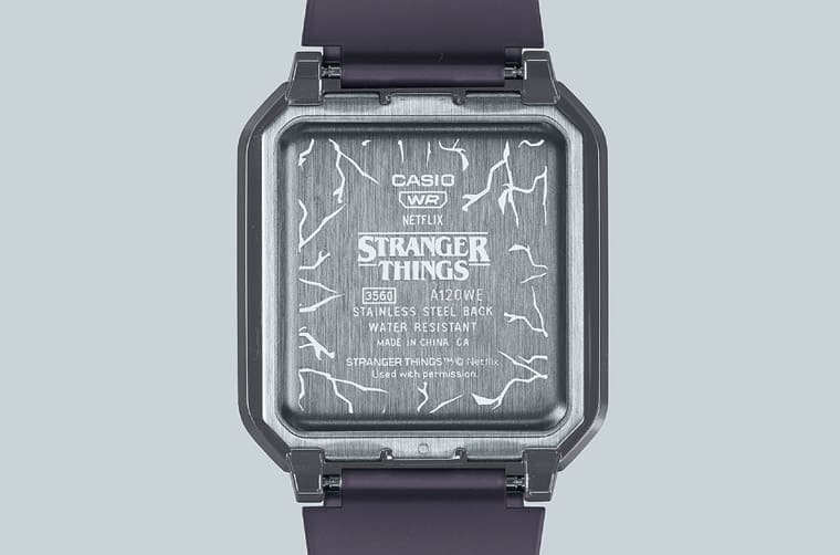 由於《怪奇物語》的故事背景富有強烈向1980年代文化精神致敬的氛圍,因此卡西歐也很應景地選了1980年代問世的數位錶款A120為創作基礎,手錶的造型雖然還是A120的骨架,例如八角形錶圈、水平線條錶帶等,但是卡西歐這次倒是別出心裁地調整了A120WEST的錶殼線條、錶帶也改成樹脂材質。而且它的設計充滿「上下顛倒的世界」的奇想,詮釋《怪奇物語》敘述的與人類世界平行存在的另一個時空環境。