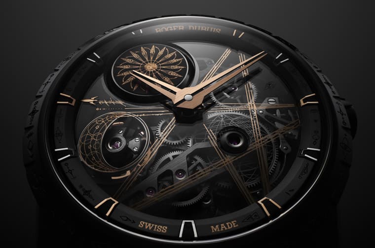 ▲羅杰杜彼二度與刺青藝術家Dr. Woo合作,2023年雙方以王者系列單擺輪手錶為基礎,採用陶瓷錶殼搭配皮革錶帶,細看錶圈與錶帶上都特別刻上具有藝術家個人風格的神祕圖騰。