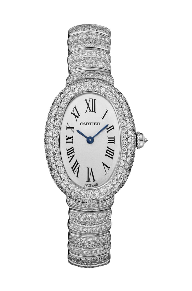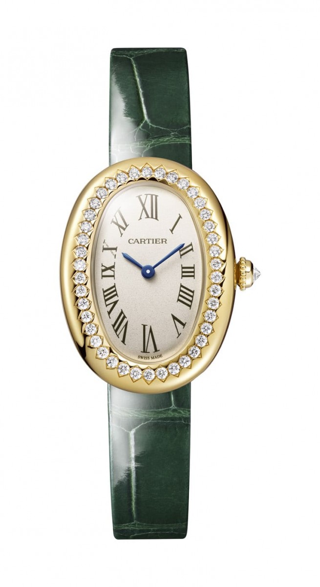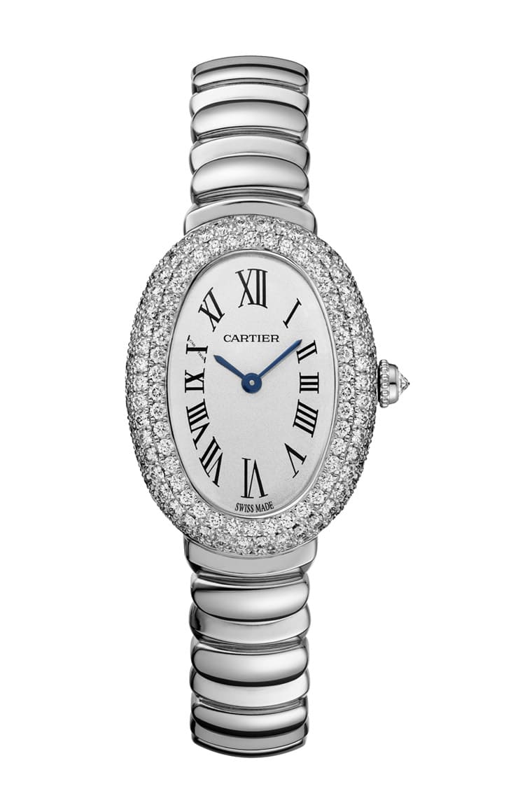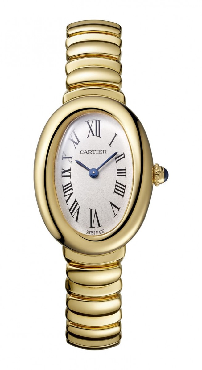 Baignoire系列在卡地亞手錶歷史中佔有舉足輕重的地位,它的誕生年份甚至比Tank還早,也是品牌旗下另一款發展超過百年的超級經典,設計特徵除了渾圓的錶殼之外,還包括弧形鏡面、面盤上的羅馬數字時標,部分款式還會搭配光滑流暢的金質緞帶,顯現出佩戴者雍容大器的氣質。