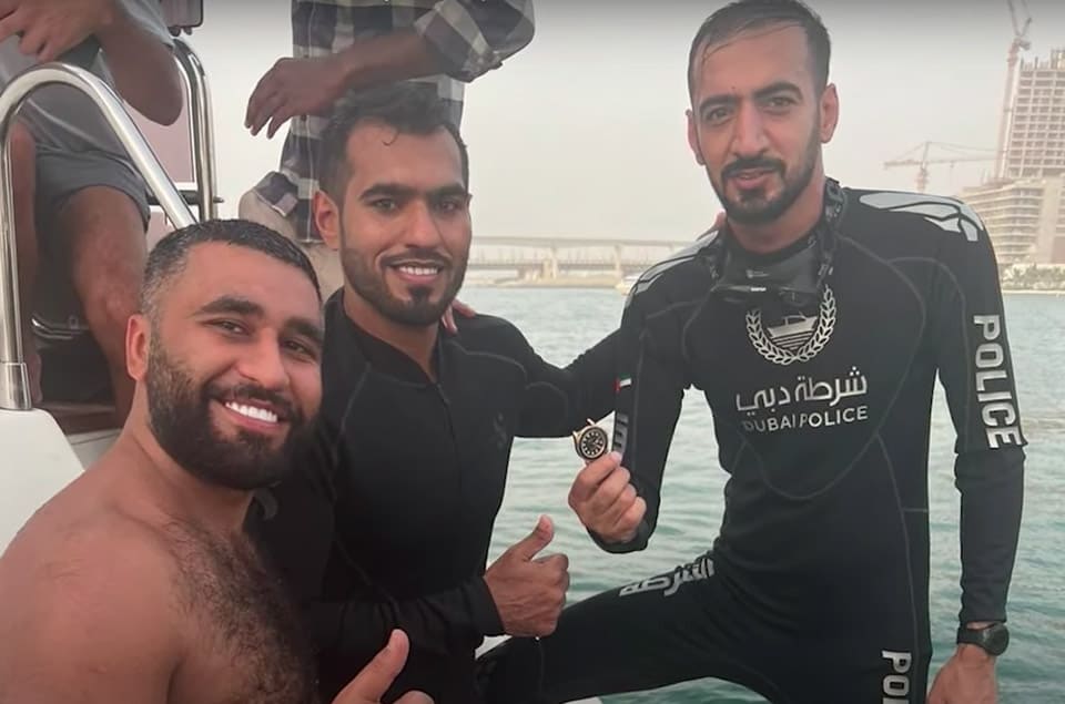 一行人都在幫忙替手錶失蹤的苦主想辦法,最後想到的是聯絡杜拜警方幫忙協尋手錶,本來他們應該是抱著死馬當活馬醫的心態聯絡杜拜警方,但據《國家報》表示,杜拜警方的海上救援隊在接到報案後,大概十分鐘左右就派了一支專業潛水隊抵達現場,並馬上就在手錶不見的海域附近進行搜尋,出動這群專業潛水員後的30分鐘,警方事後表示在水下約11.5公尺處找到了失主的手錶(還好水深不算太深)。