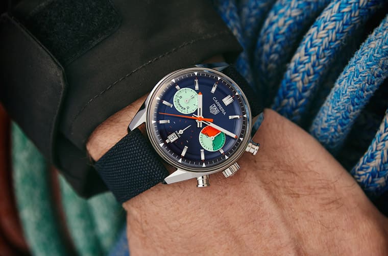 ▲手錶的面盤與小錶盤顏色與1960年代泰格豪雅贊助美洲盃帆船「無畏號」(Intrepid)的故事有關。