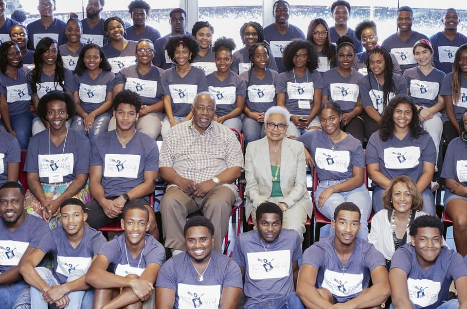 ▲照片中央為漢克阿倫伉儷,他們共創的逐夢基金會迄今已經累積協助超過800位學子進入高等教育學府,致力改善年輕人的生活。
