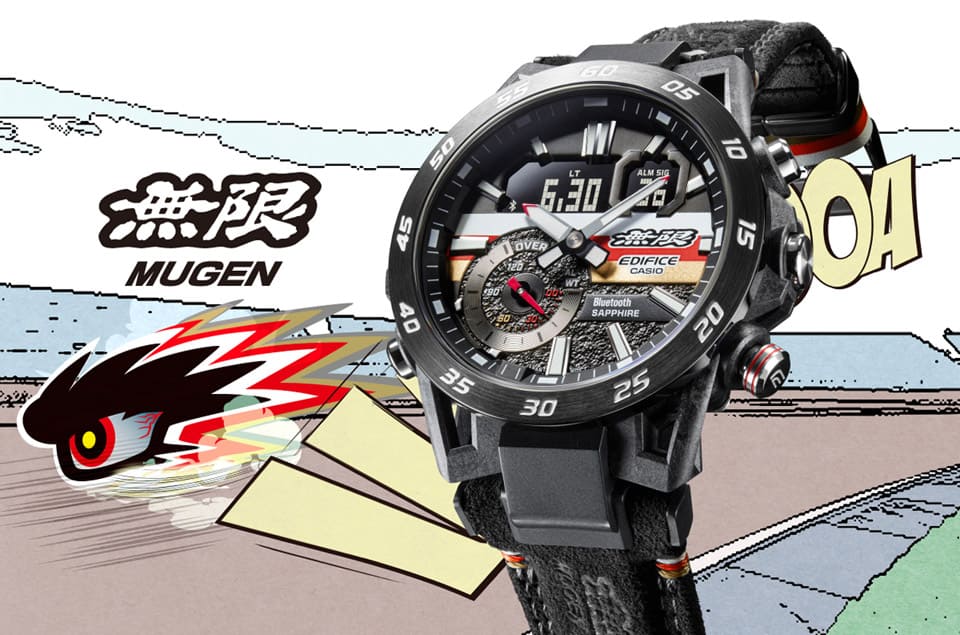 CASIO卡西歐旗下系列EDIFICE常與運動領域結盟,最近他們找上了日本賽車先驅品牌「無限MUGEN」合作,聯手打造一款特別版手錶ECB-40MU,在ECB-40手錶的基礎上挹注濃濃的賽車競速熱血氛圍。