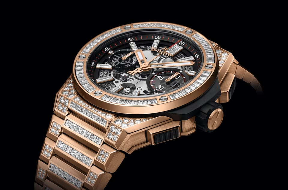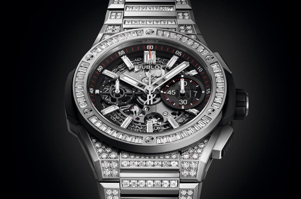 HUBLOT宇舶推出全新Big Bang Integrated方鑽鍊帶計時碼錶,錶款分別以皇金和鈦金屬製成,搭配品牌精挑細選的上百顆方鑽和圓鑽,讓手錶散發出運動錶少見的奢華璀璨風格。