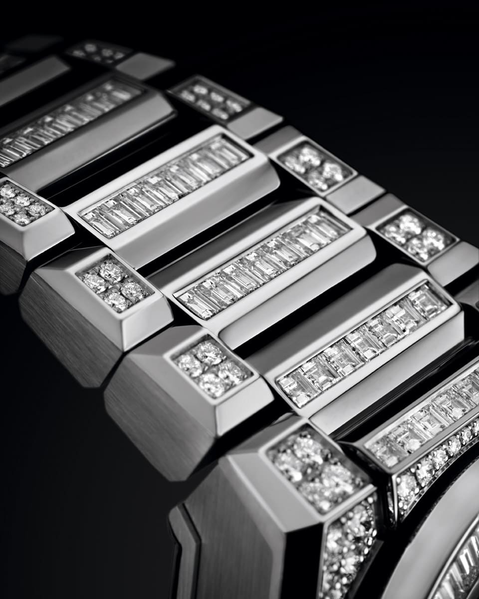 宇舶觀察到亞洲男性對於佩戴鑽石手錶的需求逐漸增長,並且渴望追求獨特且具有高價值的作品,因此放眼2023的高級錶壇,珠寶鑽錶儼然成為一個重要的趨勢。宇舶錶花費相當長的時間篩選高等級的鑽石,後續加以雕琢切割也很花時間。Big Bang Integrated方鑽鍊帶計時碼錶的鑽石尺寸和形狀,均經過品牌精心設計,成品不只規律穩固,還富有層次感。
