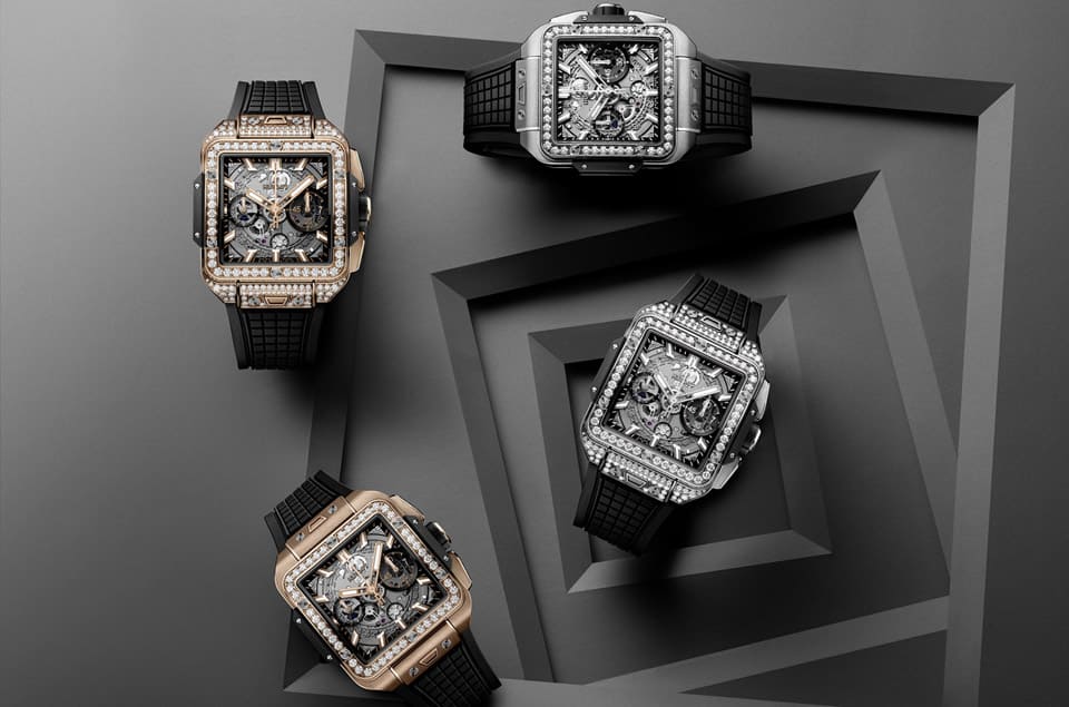 ▲方形錶殼的Square Bang系列誕生後持續進化,如宇舶導入鑽石裝飾吸引層峰收藏家注意。