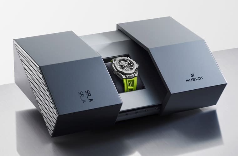 ▲Big Bang Samuel Ross極光綠陀飛輪擁有特殊設計錶盒,將手錶的限量聯名身分表露無疑。