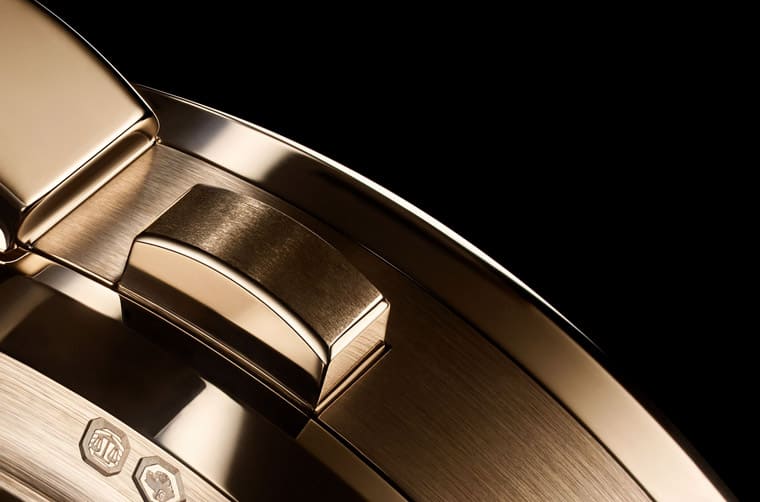 ▲錶殼左側的按把是啟動三問功能的關鍵。