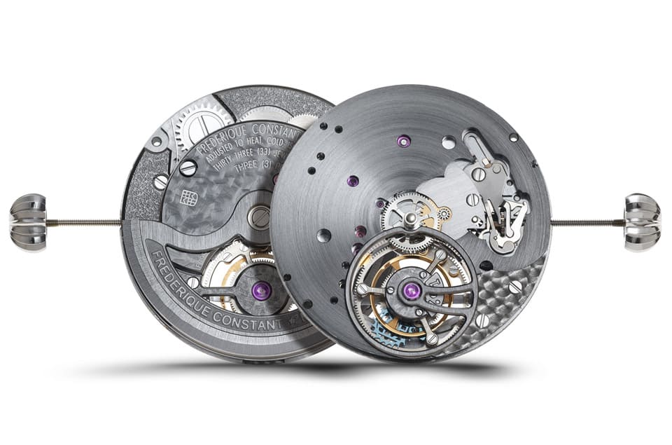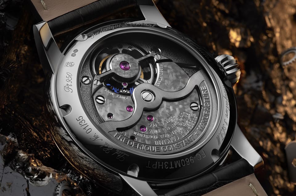 錶款搭載的是他們2008年首度研發而成的FC-980自動機芯,這枚機芯除了達到陀飛輪等級的複雜度,還蘊含矽質擒縱輪和擒縱桿等零件,有助於優化手錶的性能與精準度。而康斯登當初在研發機芯時也刻意將陀飛輪組件的重量控制在0.59克,使其在運轉過程中所消耗的能量較低,間接使得機芯的動力儲存能夠維持在38小時的正常水準。