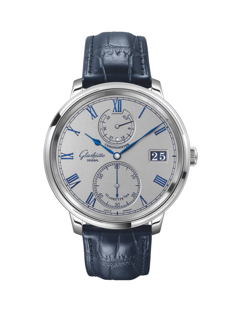 18K白金材質/58-08手動上鍊機芯/時、分、小秒、大日期顯示/動力儲存顯示/日夜顯示/德國天文台錶認證/藍寶石水晶鏡面/防水50米/錶徑42mm/參考價:NT$ 1,090,000