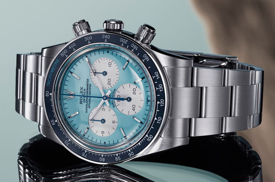 勞力士Daytona ”Scona”的細節與藍色關係密切,它們代表了海洋顏色、義大利城市的夜景與紳士正裝的絲綢布料等等,用來點綴手錶的細節能達到畫龍點睛的效果,以下分別來看看有哪三個部分的零件都有藍色這個共同元素:
