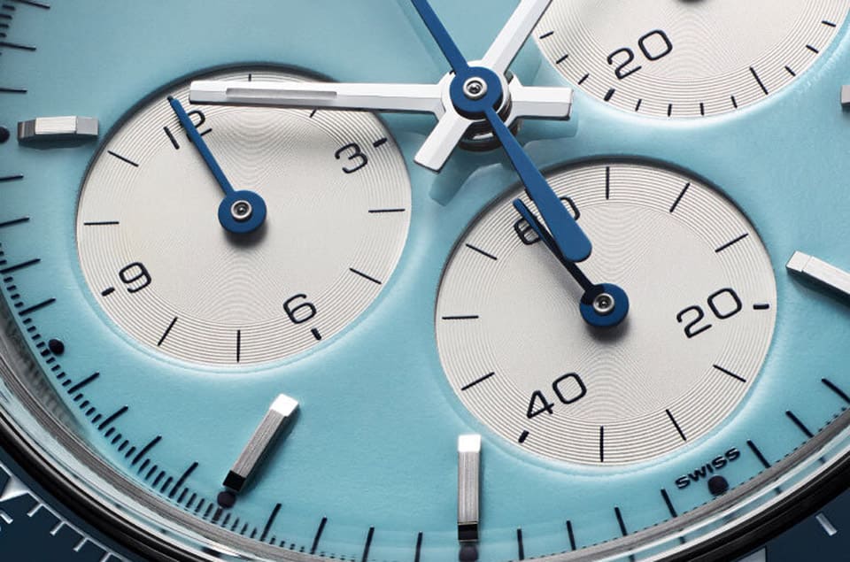 ”Scona”的青色漆藝面盤搭配白色同心圓紋小錶盤以及午夜藍色陶瓷錶圈,像天空又像海邊的景致令人賞心悅目,而從手錶的錶冠護肩被取消、錶圈測速計刻度以及時標設計與造型的改變不難發現手錶擁有復古風格導向的概念,乍看下會覺得Artisans de Genève主要著墨在配色的修改,但實際上手錶的細節變化很多,除了前面提到的部分之外,又如不鏽鋼鍊帶的表面原本交錯使用拋光與拉絲處理,如今一律改成拉絲處理,強化手錶的運動個性之餘,也少了一些突顯髮絲紋與指紋的機會,這些都是會讓錶主拿到手錶之後深刻感受到煥然一新的細節改造之處。