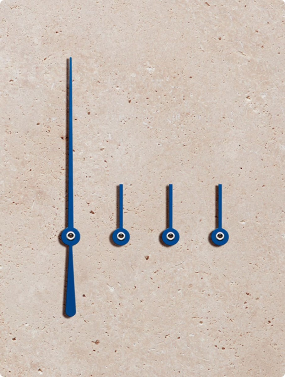 手錶上的大小指針都經過細部修飾例如鑽石拋光與倒角等,Artisans de Genève的目的是要呈現早期手錶般的復古風格,其中中央計時大秒針和三枚小錶盤的指針除了拋光之外,都還被施加回火處理呈現藍色外觀。