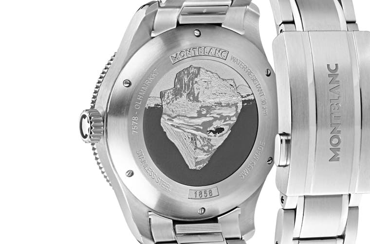 ▲錶背雖然蓋上實底蓋看不到機芯結構,但是萬寶龍仍用心地在底蓋以雷射刻上冰山與下方冰河水域,甚至連冰河下的潛水員剪影都刻了出來,十分具有臨場感。