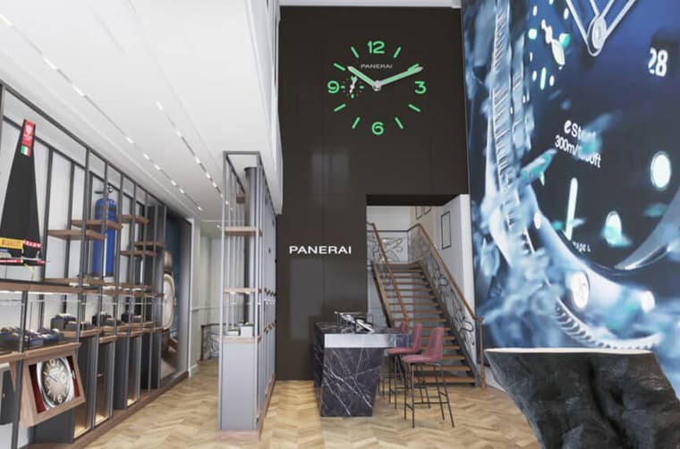 在店內一樓的博物館區設置了對於品牌而言意義深遠的文物,傳達沛納海發跡到崛起的歷程,而沿著樓梯,牆面上所固定的展示框中,裡面則是佈滿了品牌研發手錶取得的專利文件和復古廣告等。有先經過預約的品牌VIP進入店內會被引導至店內的五間接待室之一進行深度體驗,接待室的設計靈感源自大海這個和沛納海歷史密不可分的環境,而且VIP也可以透過古董時計和各種歷史里程碑的展示,加深自己對沛納海的印象。