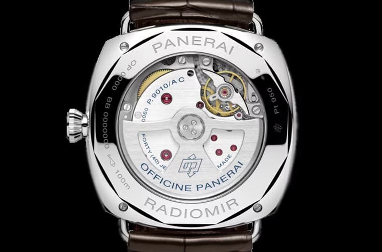 Platinumtech™材質/P.9010/AC自動上鍊機芯/時、分、小秒、日期、星期、月份顯示/年曆功能/藍寶石水晶鏡面、透明底蓋/防水100米/錶徑45mm/巴黎Casa PANERAI獨賣