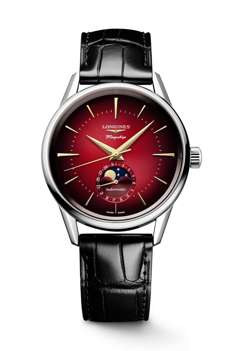 旗艦復刻系列龍年限定錶採用不鏽鋼材質,表示手錶的價格門檻不會難以高攀,從中顯見品牌希望可以讓更多人有機會入手一款獨具特色的生肖錶。錶款的尺寸不到40mm,很符合它外在斯斯文文的形象,浪琴表並替手錶配置黑色鱷魚皮錶帶,讓面盤的搶眼色調能進一步突顯。品牌這次亦開啟系列先例,將大中華地區過年過節不可少的應景顏色——紅色套用在手錶面盤上,而且紅色還呈現由中央到邊緣逐漸變深的漸層色澤,這種顏色是旗艦復刻系列過往未曾使用的,加上立體鑲貼時標與指針又都鍍上金色,徹底詮釋出農曆新年那種「一元復始,萬象更新」的濃濃賀歲感。