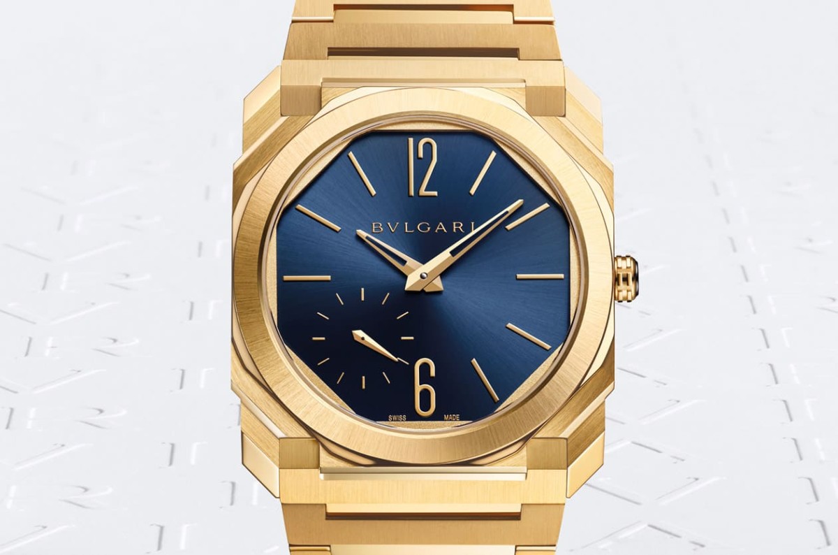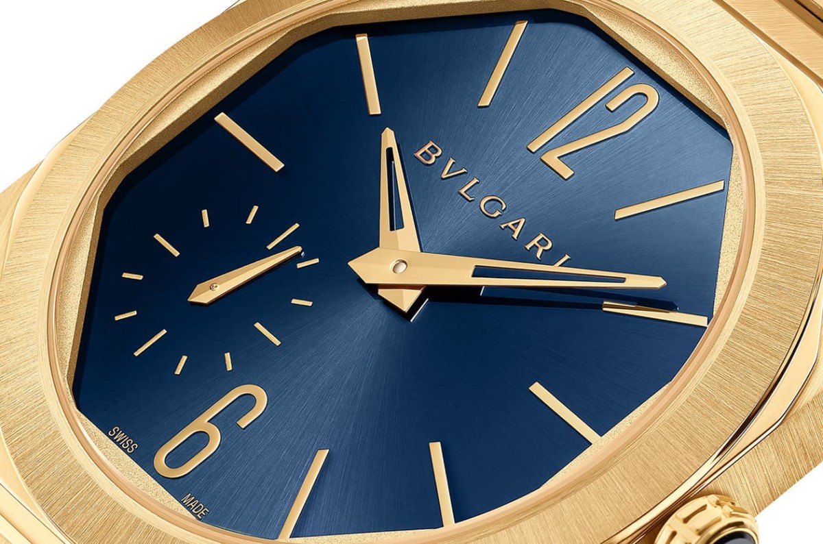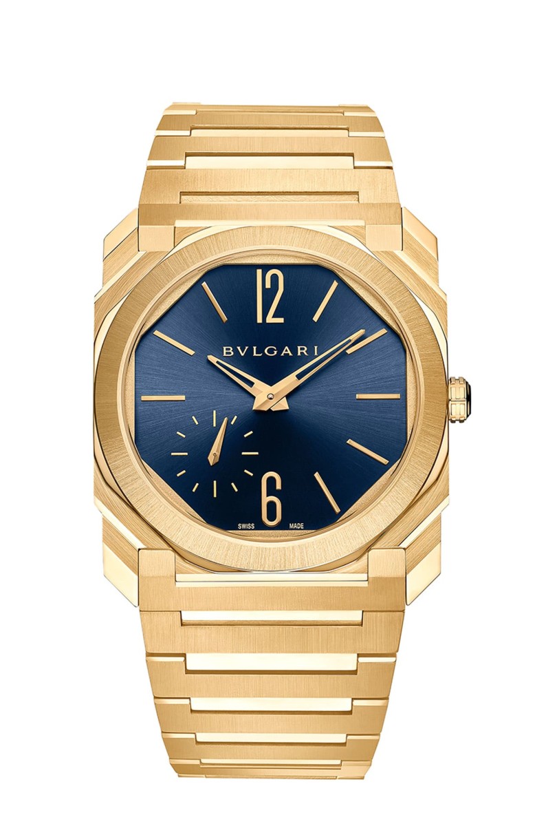 ▲Octo Finissimo Automatic黃金錶殼新作搭配太陽放射紋深藍色漆面,散發出高雅成熟的韻味。