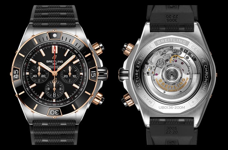 至於被送的錶乃是百年靈的Super Chronomat B01 44,這款錶為不鏽鋼材質搭配錶圈、計時按把與錶冠等處部分使用玫瑰金零件,Jared Goff入手的款式搭配黑色橡膠錶帶,台幣定價為NT$ 356,000,其實也算是頗為豪華的禮物了。Super Chronomat B01 44望名知意錶徑有44mm,對多數亞洲人而言,這種尺寸屬於大型、沒那麼容易駕馭,但還好Jared Goff和他的進攻組隊友都是那種體型壯碩的職業運動員,因此戴上這款錶還滿剛好的。手錶內部的B01 計時機芯是百年靈的招牌作品,含有計時碼錶功能加日期顯示,走時精準度獲得COSC瑞士天文台認證,動力儲存達70小時也很夠力,Jared Goff會看上這款錶顯然不只和手錶外型有關,它的內在品質相信也是雀屏中選的關鍵原因。