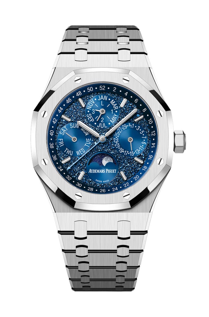 ▲愛彼AP替自家手錶的忠實收藏家John Mayer打造了一款限量的皇家橡樹萬年曆,手錶特別之處在於啟用新的面盤裝飾工藝。