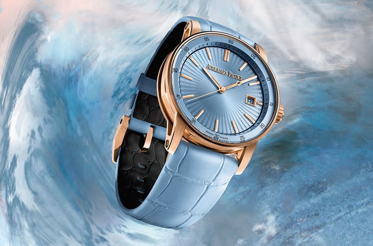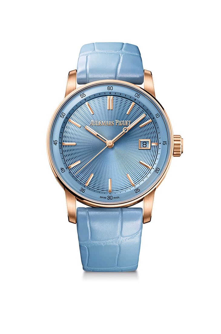 首先在大三針作品部分,CODE 11.59自動錶分別有38mm和41mm兩種尺寸聯袂出擊,一看到38mm就會馬上反應到愛彼AP其實是在2023年第4季才開發出這種新尺寸,讓偏好佩戴較小錶徑的人士可以找到愛上這個系列的理由。38mm的CODE 11.59自動錶繼2023年首度問世的玫瑰金紫面與玫瑰金象牙白面後,2024年新增淺藍面與品牌經典的「雲夜藍50」面兩款,兩者分別搭配與面盤同似的珠光鱷魚皮錶帶,散發出一個活躍奔放、一個沉靜優雅的形象。
