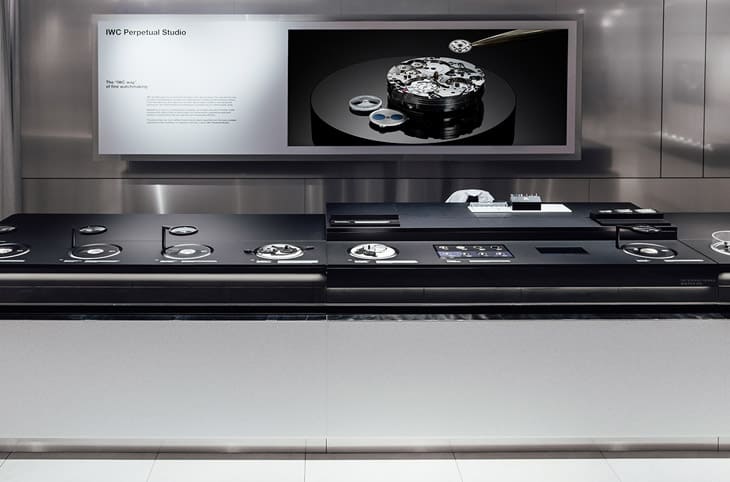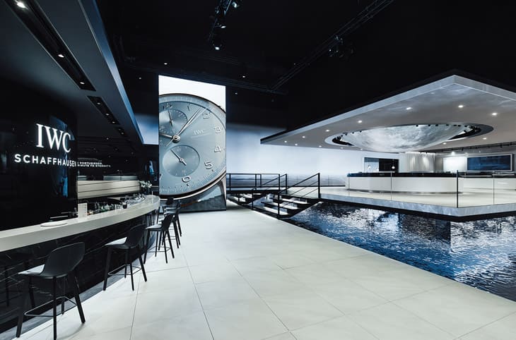 IWC在2024年的日內瓦鐘錶與奇蹟展場上呈現出現代主義建築風格,開放式的空間中可見許多有水有關的元素,呼應著品牌創立時工坊位於萊茵河畔的淵源。品牌於展場設置的大型螢幕會輪流展示今年葡萄牙系列的各式新作,讓現場嘉賓在看到實錶之前就可以先一窺IWC 2024年設計的新意,同時展場內還可以看到一顆巨大銀色月球,這點巧妙呼應葡萄牙系列重要複雜功能——萬年曆常配備的月相顯示。