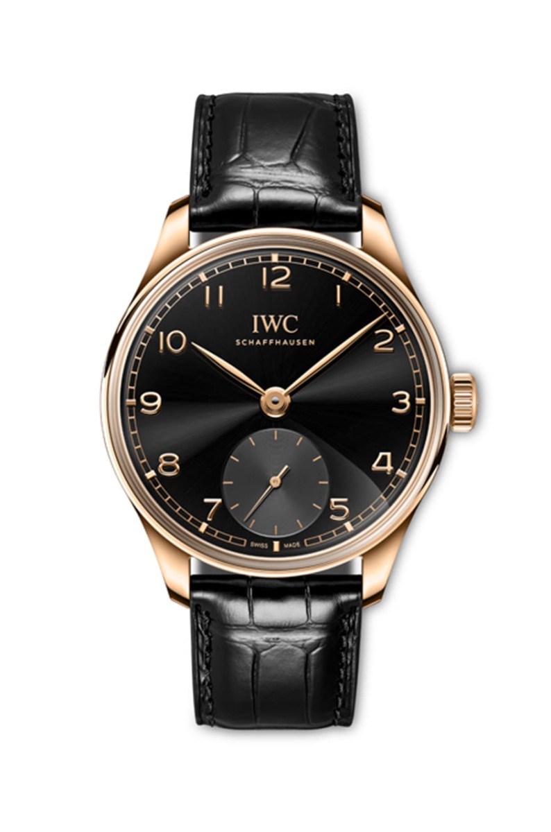 系列中除了42mm,還有40mm的小三針,它呈現出簡潔開闊的面盤格局,讓人回憶起1939年問世的首款葡萄牙手錶(型號325)。這款錶搭載82200機芯,配備比勒頓上鍊系統、陶瓷零件及60小時動力儲存,IWC分別推出18K白金及18K玫瑰金共兩種版本。