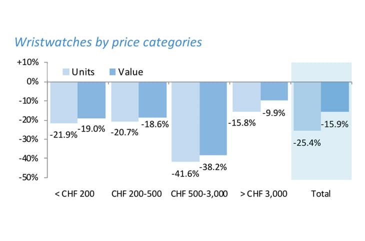 瑞士一間Vontobel公司的分析師Jean-Philippe Bertschy對《彭博社》(Bloomberg)表示:「瑞士鐘錶產業的負面走勢比我們預期的還要糟糕,其中中國市場的下滑確實會令人感到擔憂,從瑞士手錶出口額下滑中可以發現該地區的庫存量有過高的跡象。」