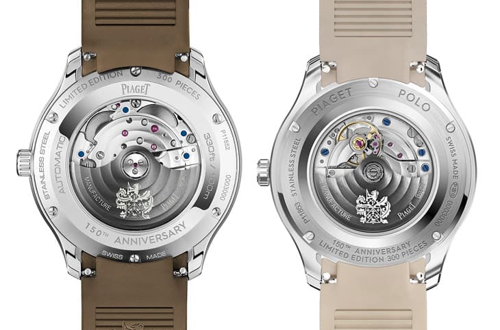 ▲兩種尺寸的Piaget Polo 150週年紀念錶皆搭載自動機芯,在透明底蓋下可以一窺機芯的精緻打磨作工。