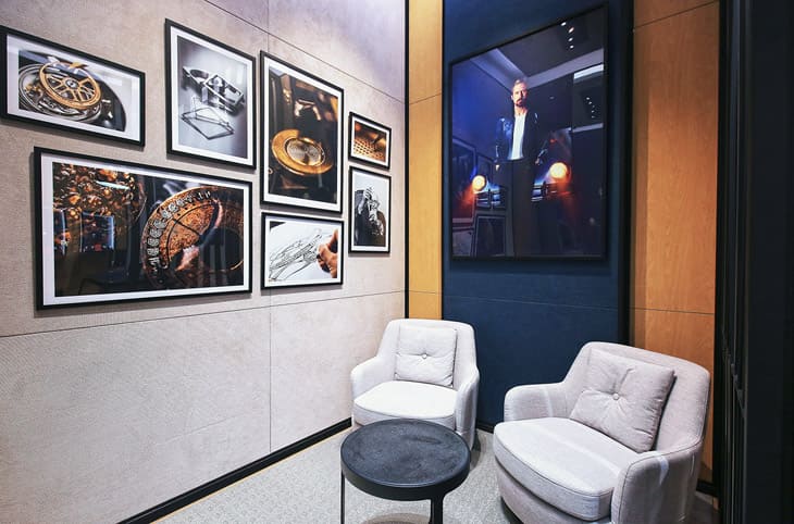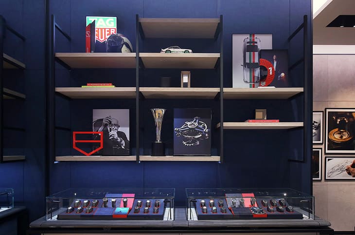 泰格豪雅板橋大遠百全新專賣店設計風格以創新與現代為主軸,將品牌精髓與煥新面貌完美呈現。走入店內,映入視覺的灰色調與黑色金屬線條形成俐落對比,並運用石材和淺色木質元素增添一股溫暖,藍色牆面呼應了Monaco系列標誌性面盤顏色,營造出充滿動感與活力的空間氛圍。泰格豪雅對個性化和以客戶為中心的理念,在店內最深處的VIP室中得以體現,客戶於此可以享受隱密且舒適的賞錶體驗。