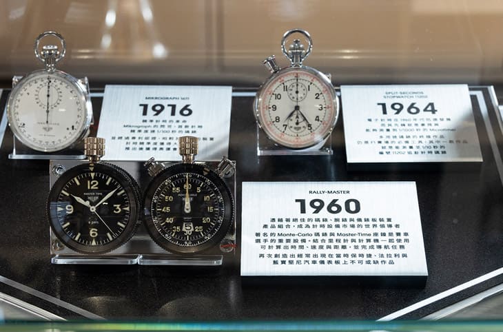 ▲泰格豪雅《追夢前行,競逐不止》古董時計巡迴展部分展出作品。