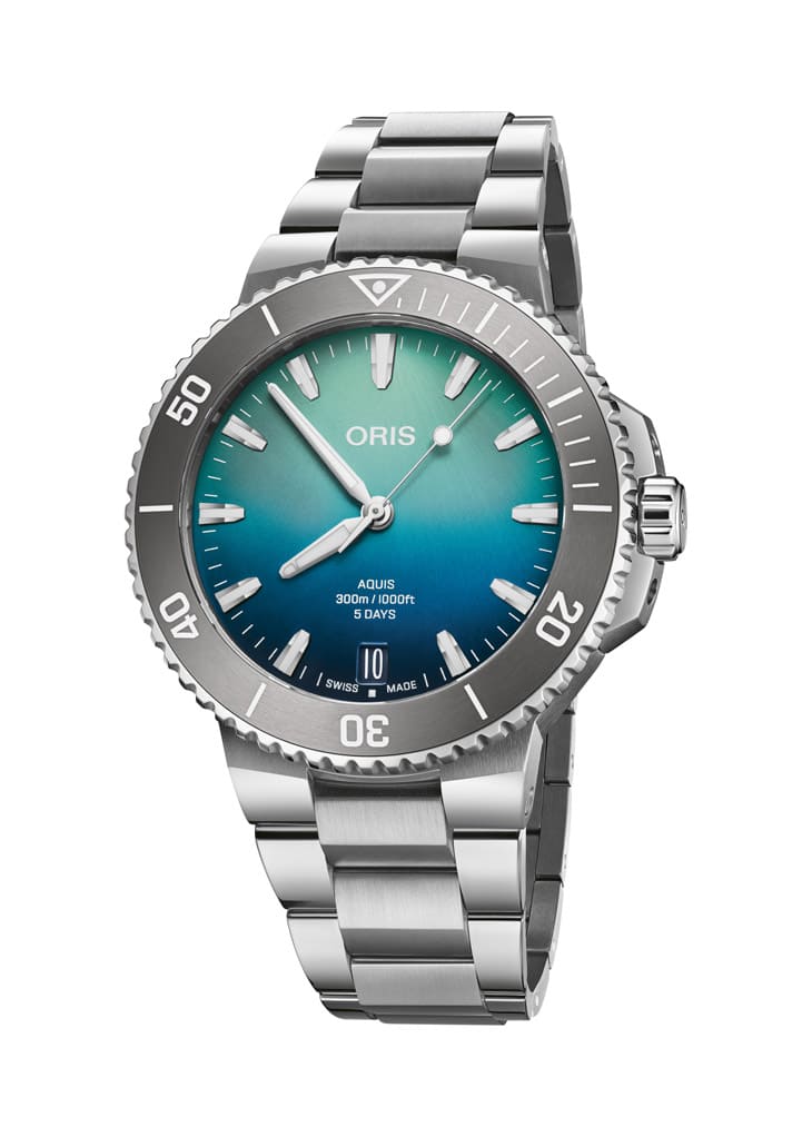 ▲Aquis系列今年剛改款一輪,ORIS替期換上藍色漸變設計,讓人想起大堡礁所在的美麗海面。
