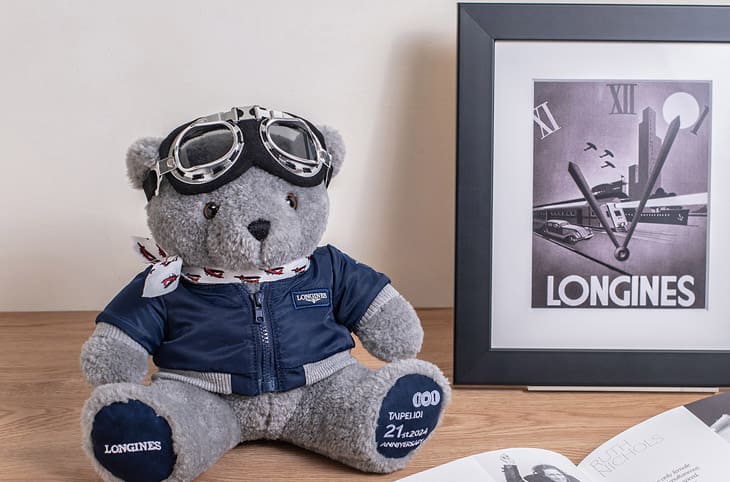 隨著這款浪琴表台北101名品店獨賣的新作上市,品牌也第一次和台北101購物中心合作,慶祝後者邁入創立21週年的里程碑,特別製作出LONGINES x Taipei 101限量珍藏第21代聯名紀念熊。至於品牌本身也於台北101名品店推出專屬限定款式的LONGINES x Taipei 101聯名飛行小熊,小熊玩偶身穿藍色飛行夾克,並搭配飛行領巾、飛行眼鏡以及懷錶風格隨身鏡,於可愛親切的造型中將品牌歷史與飛行領域相關的先鋒精神巧妙融入。