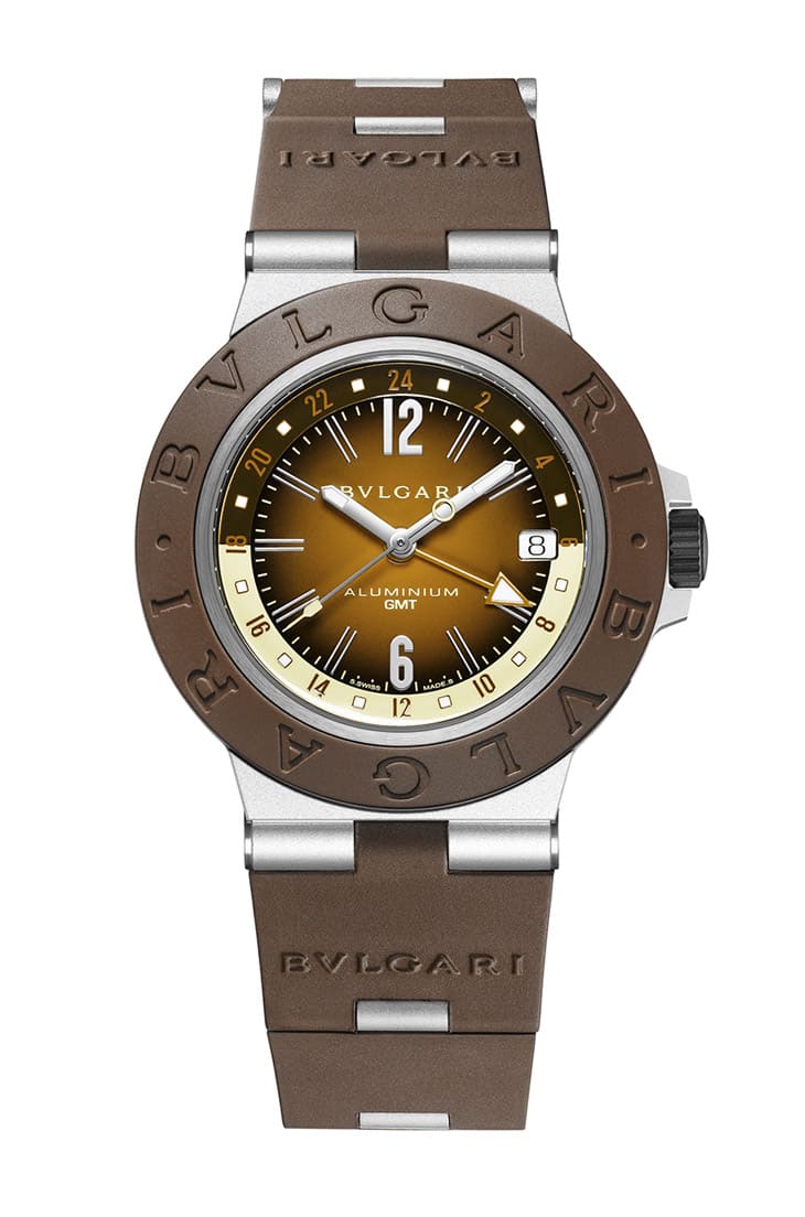 樂器製造公司FENDER是舉世聞名的吉他大廠,他們家透過Fender Custom Shop把客製吉他樂器提升到猶如藝術般的境界。寶格麗2024年跨界與Fender Custom Shop合作,為慶祝後者經典作品電吉他Stratocaster問世70週年,因而衍生出Aluminium GMT x Fender®限量版這款作品來致敬。