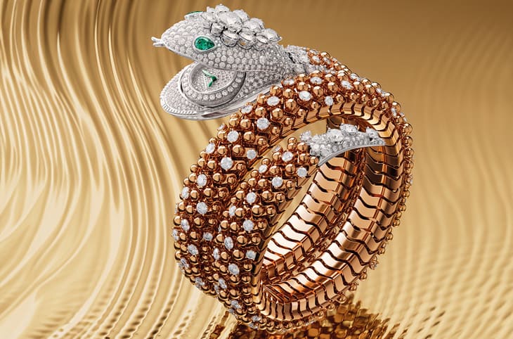 ▲寶格麗以1955年創作的Pallini手錶為藍本,結合en tremblant顫動技法催生出Serpenti Pallini手錶。