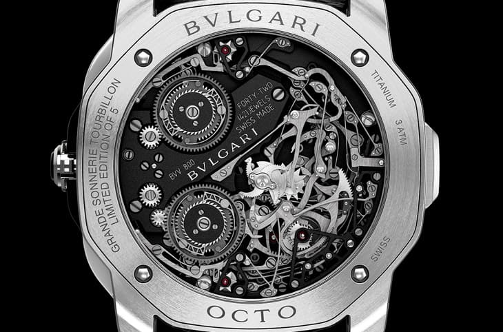 ▲Octo Roma Grande Sonnerie Tourbillon大自鳴陀飛輪搭載的BVV 800手上鍊機芯複雜程度不同凡響,堪稱品牌製錶工藝之巔。
