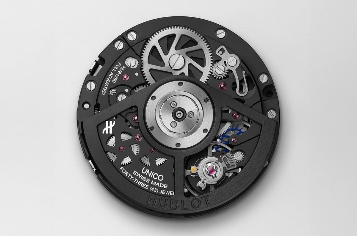 如果只是將傳統面盤改成開面設計,UNICO機芯還不至於這麼「獨特」,讓它能夠大受層峰市場歡迎的基礎,還是在於機芯本身的創新概念與設計巧思。以目前品牌主力採用的HUB1280為例,其研發方針是要讓手錶在生活中各式情境中佩戴都予人安心可靠的紮實感,包括走時的精準度,以及由強大避震效果帶來的運作穩定性等等,同時這枚機芯一方面顧及美感選擇傳統的水平離合機制,但宇舶也藉由設計面的精進優化,有效改善傳統設計可能造成計時大秒針啟動時的顫動情況。而且它和一般計時機芯相較之下,蘊含宇舶四項專利更是大大提升其耐人尋味的賞玩價值,包括雙重擺動水平離合機制、可調校的滾珠軸承系統、單向齒輪的棘輪固定系統以及自行創作的微調系統等。