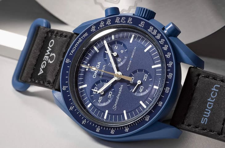 第100萬只MoonSwatch屬於初代款式中的Mission to Neptune(海王星),這只錶和一般的海王星MoonSwatch稍微有點不同之處在於它的中央計時大秒針鍍上了Moonshine金,所以它和後來在2023年8月推出的Mission to Moonshine Gold Blue Moon有似曾相識的感覺,不過當時SWATCH純粹是為了紀念第100萬只里程碑才把計時大秒針鍍上金色,而非為了呼應藍月的創作主題,此外第100萬只MoonSwatch也還附有一枚刻有生產序號的金屬獎牌,這點讓它的收藏意義更顯不俗。