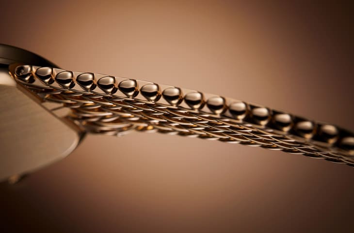▲Golden Ellipse 5738/1R-001啟用百達翡麗全新設計的鍊帶,其共由300多枚零件密致組成。
