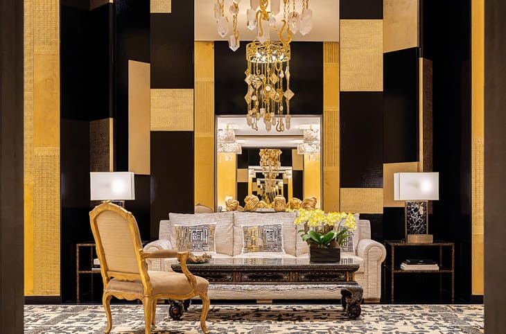 ▲圖片中間為當代藝術家Delos & Ubiedo打造鍍金青銅結合石材所訂製的邊桌。