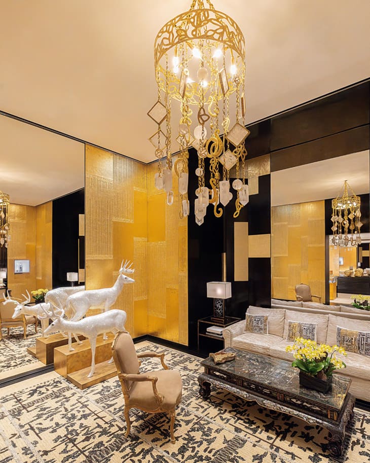 ▲VIP包廂沙發背後牆面為美國畫家Y.Z. Kami創作的多聯拼貼作品,另有藝術家Mark Swanson創作的水晶鹿雕塑品。