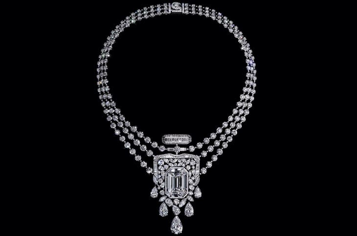 ▲慶祝N°5香水誕生100週年推出的55.55項鍊,共700顆鑽石鑲嵌於55.55克拉訂製寶石周圍,閃耀華麗光芒。