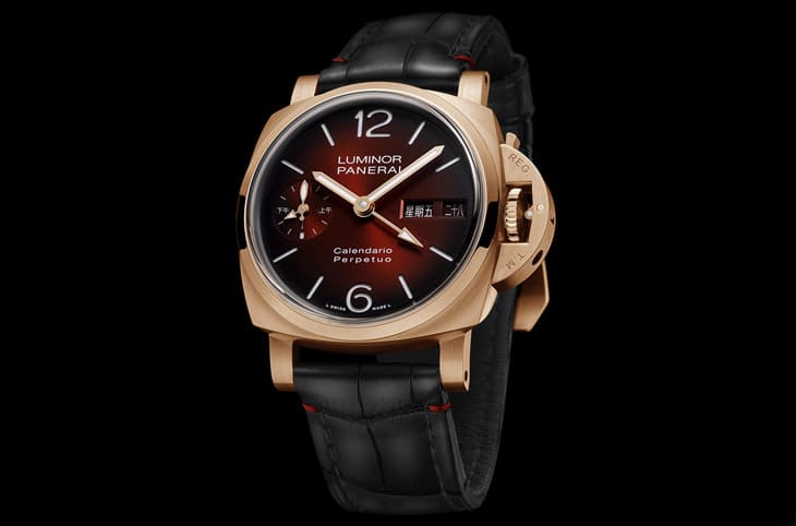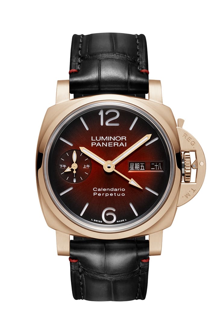 ▲沛納海Luminor Perpetual Calendar新增Goldtech™紅金款式,面盤的紅色與錶殼呼應,用意在致敬大中華區農曆新年喜慶。