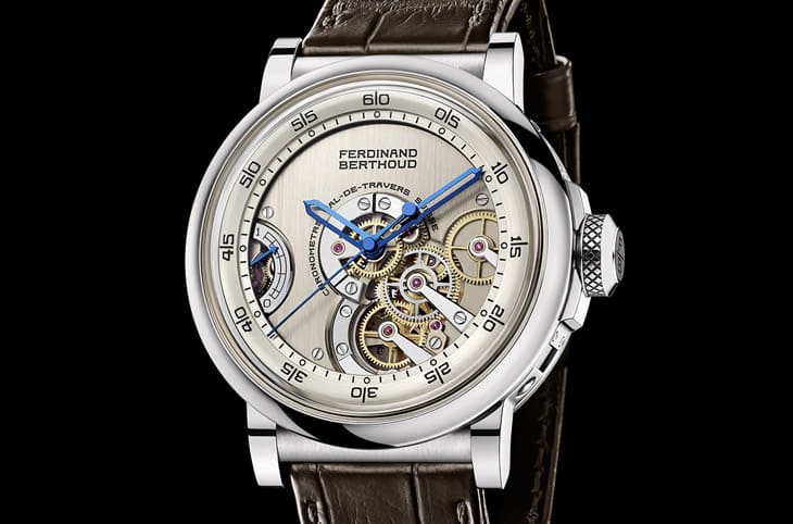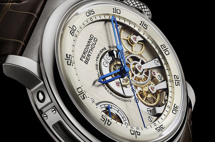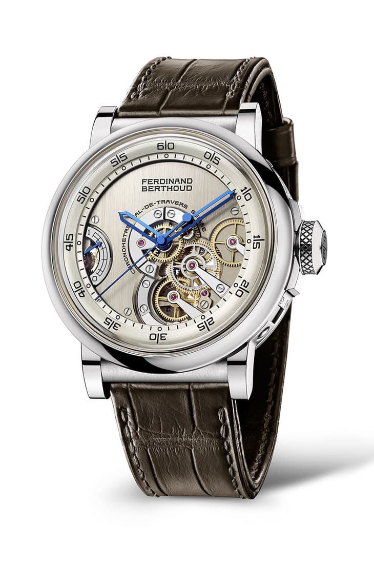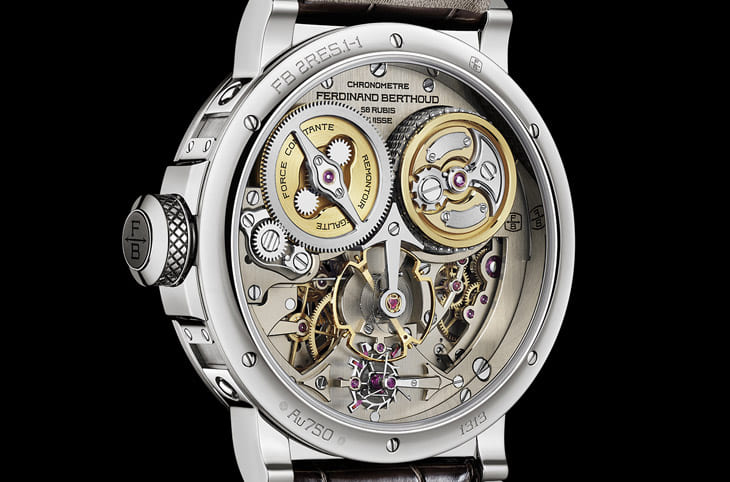 FERDINAND BERTHOUD第二個系列Chronomètre FB 2RE含有許多重大的突破性設計,如:首款圓形錶殼、首款配備中央三指針的顯示設計,最重要的是,它還是搭載首款配備雙重調節機構的機芯,結合圓錐輪-芝麻鍊恆定動力傳輸裝置與一秒均等上鍊機制等,強勢展現高深製錶技藝。