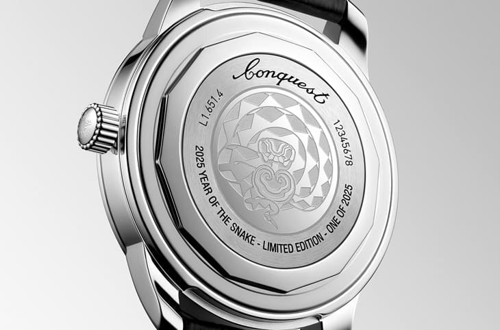 浪琴表這款生肖錶限量發行2025只——呼應乙巳蛇年的西元年份,雖然數量不是特別稀少,卻也替手錶增添了更獨特的意義和收藏價值。每一款Conquest Heritage蛇年特別版的錶背除了有藝術家設計的蛇年圖案,也刻上了手錶的限量數目,烘托它和一般浪琴表不同的身份,這款浪琴表對中國生肖文化致敬的作品,無疑也是他們獻給自家錶迷2025新年的最佳禮物。