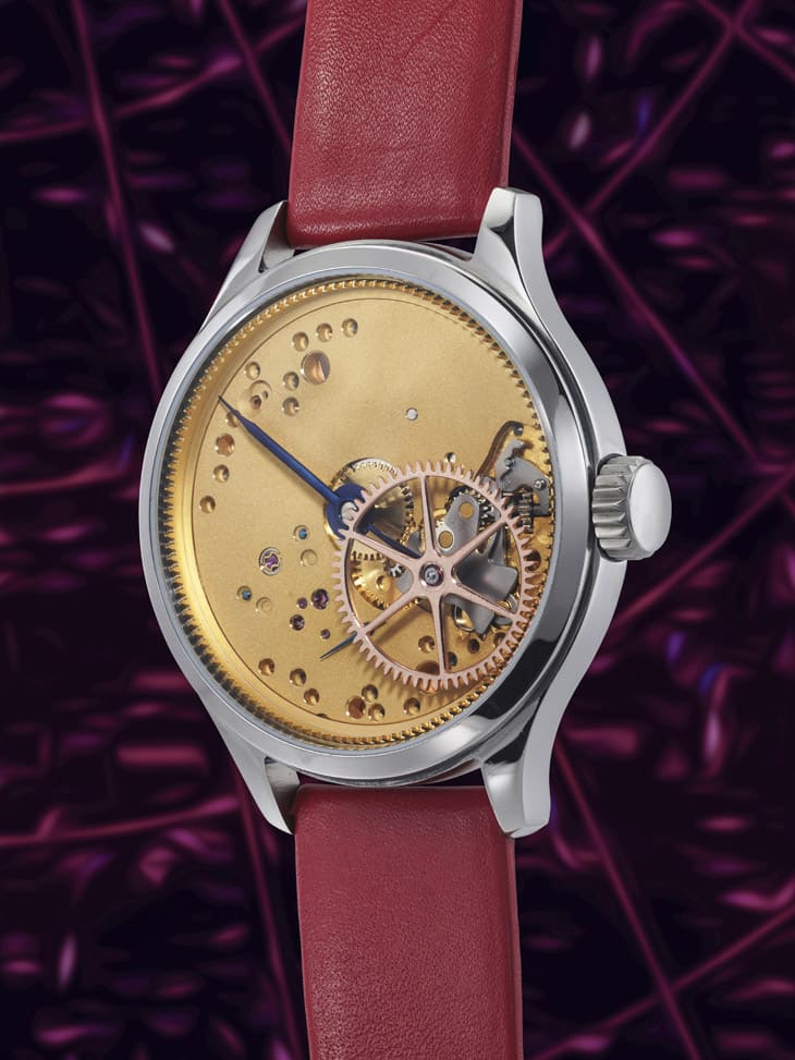 其為品牌創辦人Aren Bazerkanian製作的自家首款圓形外觀作品,其錶殼由多達29枚零件組成,面盤也採用分層設計,小三針功能由動力儲存達62小時的手工修飾機芯驅動。