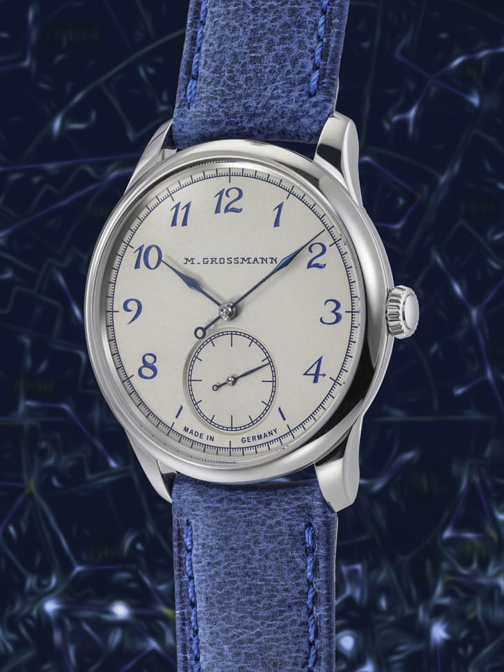 手錶淋漓詮釋德國格拉蘇蒂的傳統工藝精髓,不鏽鋼錶殼為39mm適中錶徑,其面盤經由手工鍍銀處理、阿拉伯數字時標也是以手工雕刻再填上藍色顏料,以古典風格展示內部的102.1手上鍊機芯小三針功能。