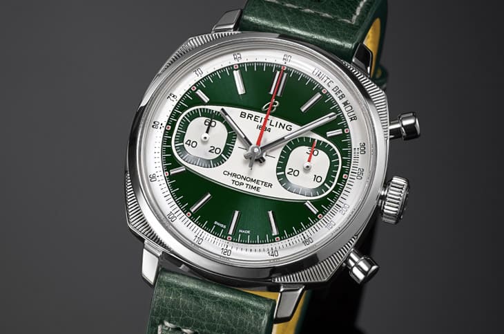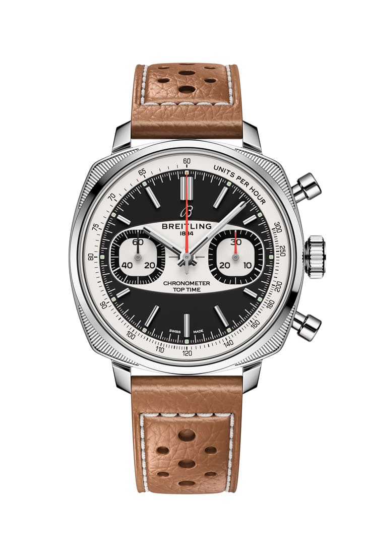 Top Time系列誕生於1960年代,由百年靈第三代傳人Willy Breitling所創作,當時他想要打破傳統,為新世代冒險者打造與眾不同的時計,因此Top Time具備的種種設計特徵,如枕型錶殼、幾何感強烈的面盤設計與測速計刻度等,都在那個時候顯得獨樹一幟,由此開啟了他們家手錶與賽車文化的連結。此次回歸的新作,無疑重新喚起那份熱血情懷,同時也自然有現代製錶科技與工藝加持。