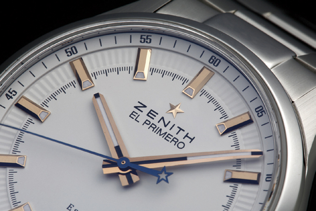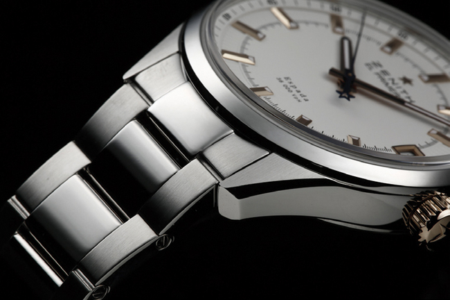 同為三針產品線,2012年推出的Espada跟ZENITH既有的其他兩個系列相比算是相對比較有運動感的,而且它還有一個很重要的特色就是高震頻,這也是ZENITH第一個36,000vph的三針系列。