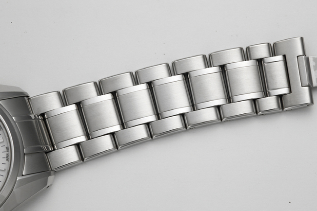 GS部份款式鍊帶鍊節之間的空隙留得很大,官方說法是為了避免咬到手腕上的汗毛,不過時下對高級錶的評價還是以空隙不要太大為美,像是這款的情形就算適中。